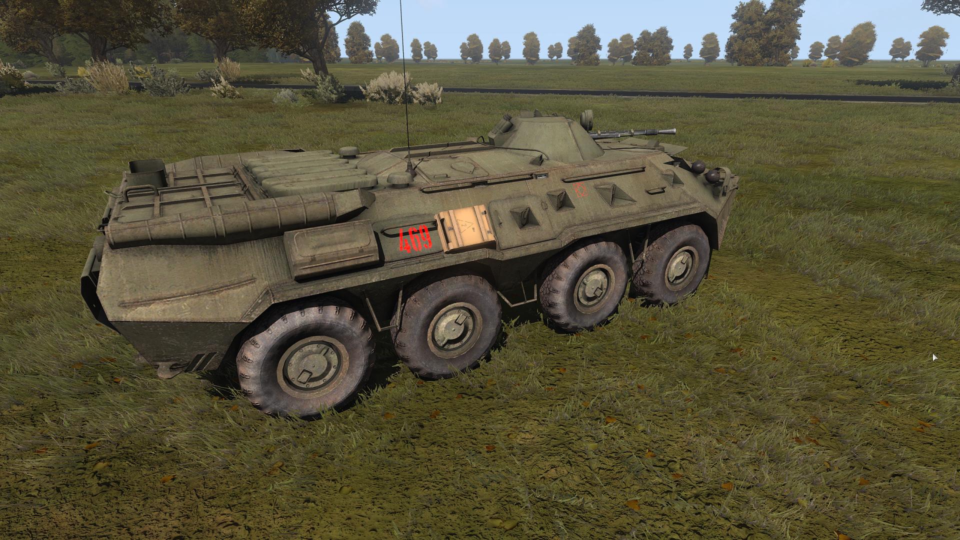 The oldest BTR in RHS, the BTR-60 sports a 14.5mm KPVT and a 7.62 PKT. The 60 is short and stocky, and can be penetrated 12.7mm and can be disabled by destroying the wheels.