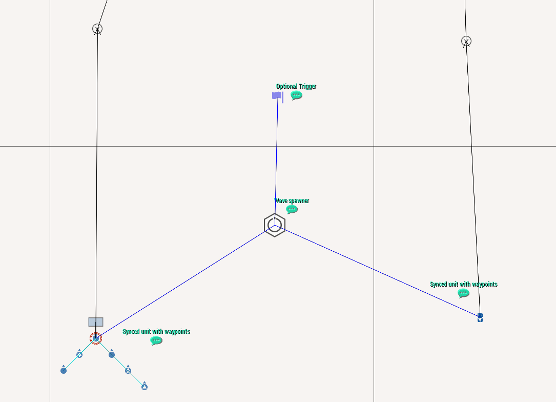 The wave spawner is a powerful tool for a wide variety of reason. Any units that are synced to the wave spawner will be replicated when the wave spawner activates. When the mission loads they will be deleted and data on them stored (loadouts and waypoints).